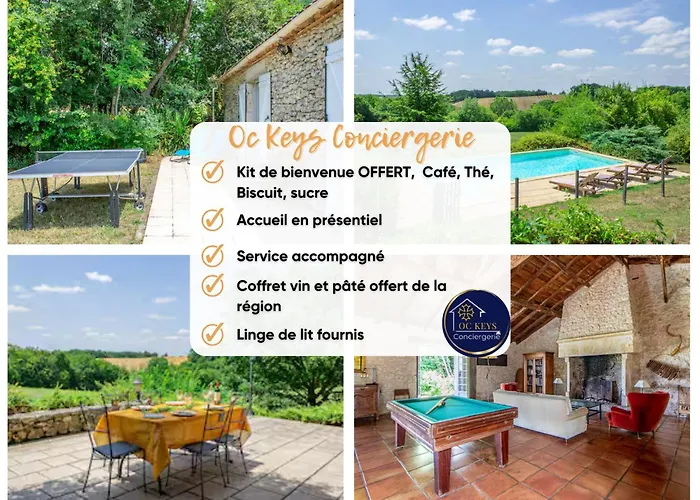 Η Maison De Charme Avec Piscine - Oc Keys επίσης έχει εξοπλισμένη μικρή κουζίνα με παροχές καφέ και τσαγιού, ψυγείο, φούρνο. Οι επισκέπτες μπορούν επίσης να φτάσουν στη βίλα από το αεροδρόμιο Agen La Garenne σε 59 λεπτά οδικώς. Στους λάτρεις των σπορ προσφέρονται επίσης πινγκ πονγκ και μπιλιάρδο.